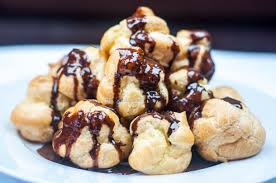 FUENTE CON MILHOJA, FLAN, PUDIN,PROFITEROLES Y HELADO